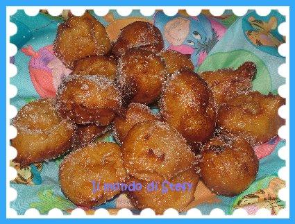 Ingredienti (per circa 50 tortelli) : 200 ml di acqua, 50 gr di burro, 50 gr di zucchero, 3 uova, 100 gr di farina, 1 bustina di vanillina, mezza mela